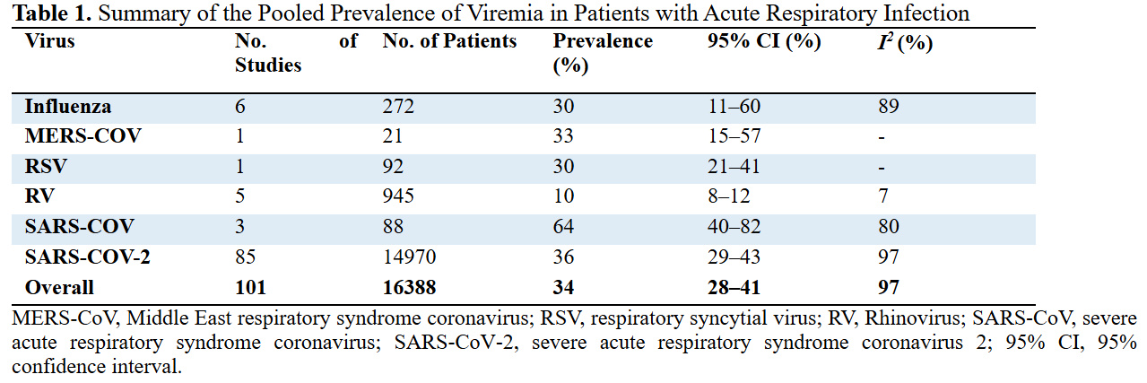 研究团队检索Medline(via Ovid)、Embase和WHO COVID-19数据库,纳入评估急性呼吸道病毒感染患者病毒血症患病率或其与临床预后关系的研究。采用随机效应模型合并结局指标。