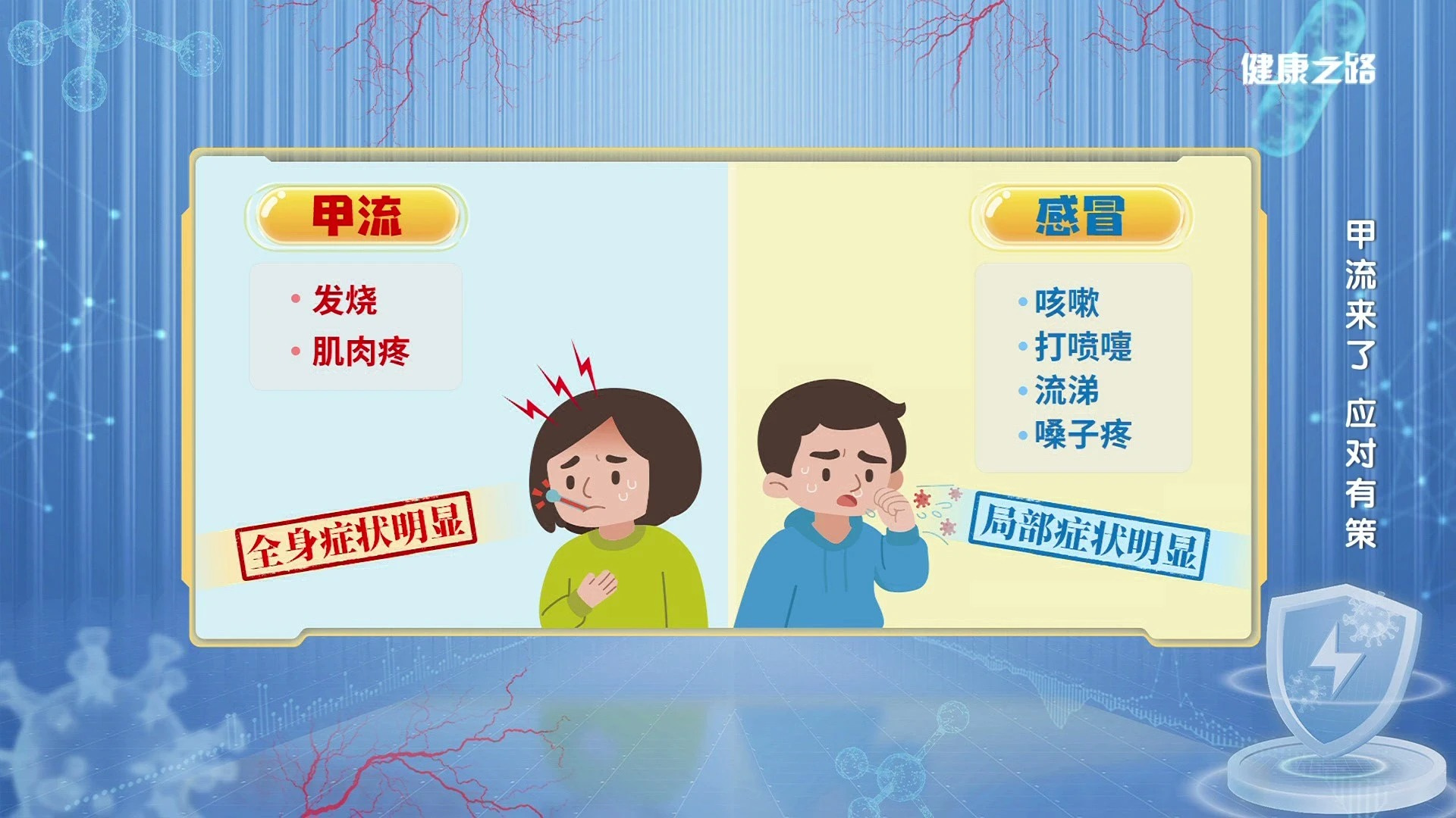 甲流往往表现为全身性的症状,例如发烧、全身酸痛等。与普通感冒的局部症状不同,一旦确诊,应尽早使用抗病毒药物治疗。