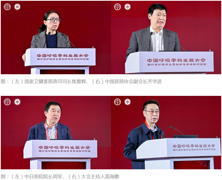 焦雅辉司长在致辞中指出,主诊医师制的核心在“负责”,现阶段加强我国年轻医师培养已经是“刻不容缓”,而培养的重点既是水平与能力,更是责任心,希望呼吸学科能够通过探索主诊医师负责制,培养出一批高水平、负责人的PCCM专科医师。齐学进会长在发言中强调,推行主诊医生负责制并与专培有机衔接,不仅事关青年一代专培医师的职业发展,更是关系到专培制度能否有持续而长久的需求支撑,是专培制度能否行稳致远的源头活水与深层动力所在,希望呼吸学科和PCCM专科在这一关键制度的设计与推行上做出有益的探索。周军院长在致辞中指出,中日医院作为在国内较早推行主诊医师负责制的医院,对于该制度推行所带来的在医疗质量、学科建设、人才培养、经济经营等多方面的益处深有体会,相信在呼吸学科推行主诊医师负责制,将对整个学科的发展起到关键性的推动作用。