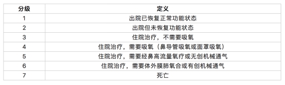 研究设计:这是一项前瞻性纵向队列研究,根据疾病严重程度进行分层随机抽样,确定在出院后6个月、1年和2年参加到院随访时需行肺功能检查者。纳入2020年1月27日至2020年5月29日金银潭医院出院的新冠患者,按照住院时接受的最高级的呼吸支持方式进行疾病严重程度划分,并分层随机抽样;7分等级量表(下表)中5分和6分患者全部纳入,共有129例,3分和4分患者按照1:2比例进行抽样;最终确定进行特殊检查的患者516例。