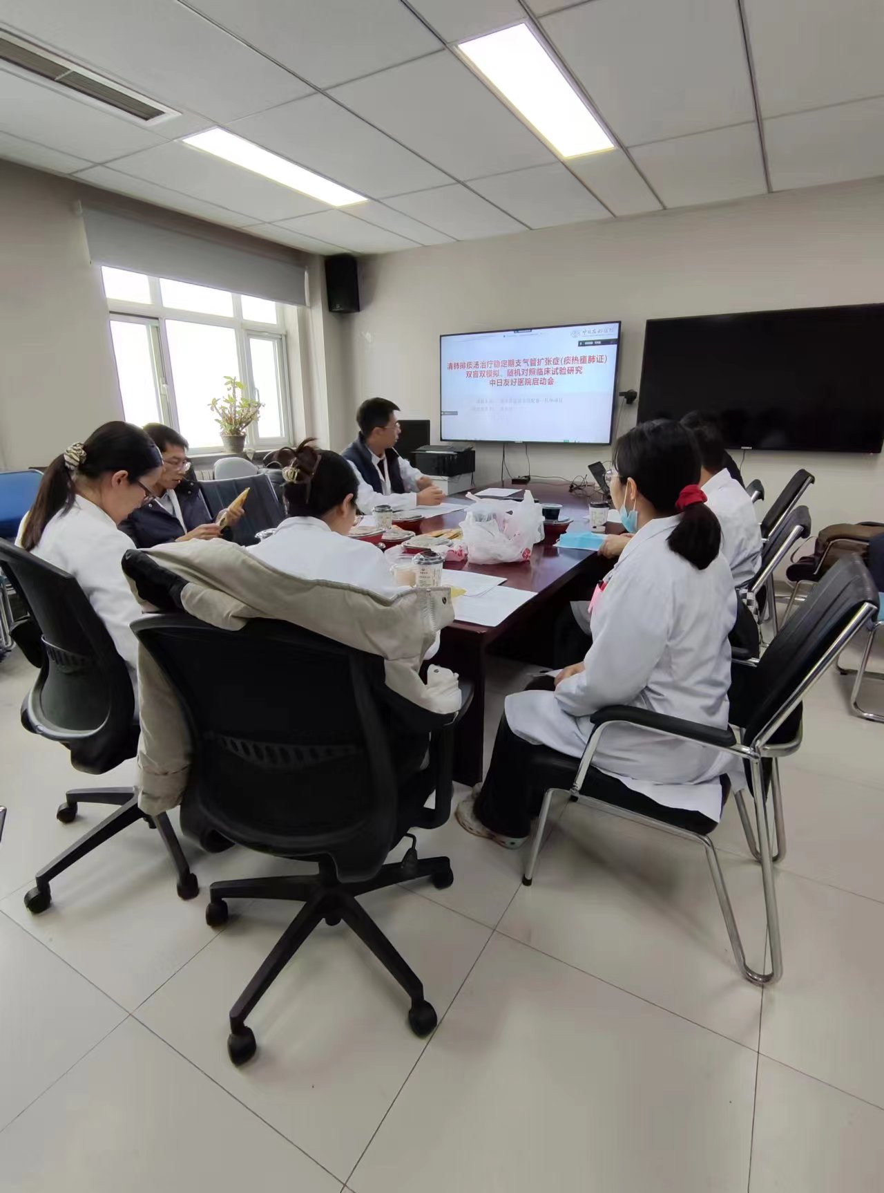 2023年12月14日由我科疏欣杨副主任医师主持的中日友好医院高水平医院临床业务费专项临床研究项目配套--托举项目“清肺排痰汤治疗稳定期支气管扩张症(痰热塞肺证)双盲双模拟、随机对照临床试验研究”(项目编号:2023-NHLHCRF-YYPPLC-TJ-05)于制剂楼开展项目启动会,参会人员包括项目主持人疏欣杨副主任医师,项目参与者李得民副主任医师、刘剑、邵翔、贾明月主治医师、肖锶瑶住院医师、张金秋护士、临床研究部李珊珊等。启动会由疏欣杨、王伟震医师介绍了本项目研究背景、研究方案、药物制剂方式、纳排标准、入组知情及后续随访等具体方案。本项目为双盲双模拟、随机对照临床试验研究,纳入受试者为稳定期支气管扩张症(痰热塞肺证),纳入研究的受试者通过信封法随机分为试验组和对照组,通过中药汤剂清肺排痰汤和中药安慰剂为期两周的治疗,观察24h痰液量、咳嗽评分、中医证候积分等变化,探讨清肺排痰汤治疗稳定期支气管扩张症(痰热塞肺证)的有效性和安全性。在座参与人员围绕项目实施中的细节问题开展讨论,包括中药安慰剂的制作、药物发放方式、随访时间、结局指标的设置、受试者招募等,以求项目在严谨的基础上具有实际可行性。