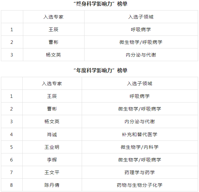 国家呼吸医学中心、中日友好医院呼吸与危重症医学科王辰院士、曹彬教授、李辉医师和王业明医师4位学者入选,内分泌科杨文英教授、科技中心肖诚教授、药学部王文平药师、原急诊科博士后陈丹倩副教授同时入选。