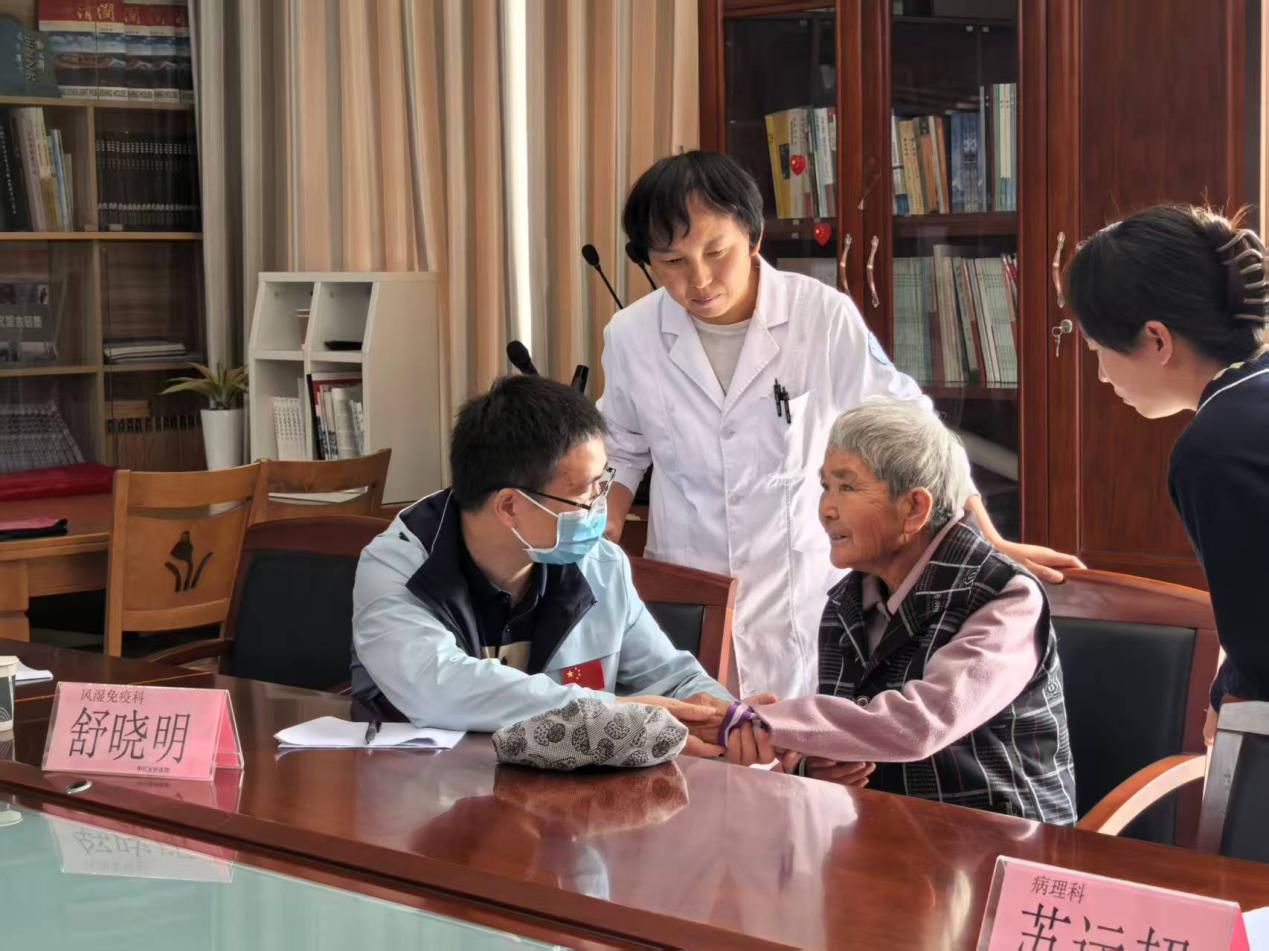国家巡回医疗队深入清涧县人民医院各个科室,开展门诊接诊、技术带教、业务查房、科普讲座、疑难病例会诊等活动,全方位帮助清涧县人民医院提高医疗服务水平。除了在医院开展了多学科义诊,赴学校进行过敏性鼻炎科普义诊外,医疗队还两次下乡来到石咀驿镇和高杰村镇义诊。专家们耐心细致地为当地群众诊治疾病、解答疑问,让清涧群众深切感受到了“国家队”的温暖与关怀。