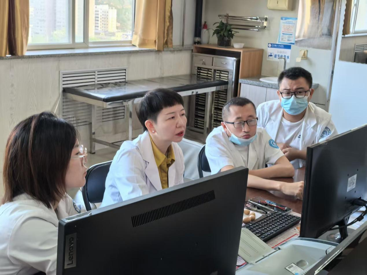 医疗队员、病理科副主任医师苏运超与清涧县人民医院病理科、检验科讨论检验检查与病理联合诊断要点