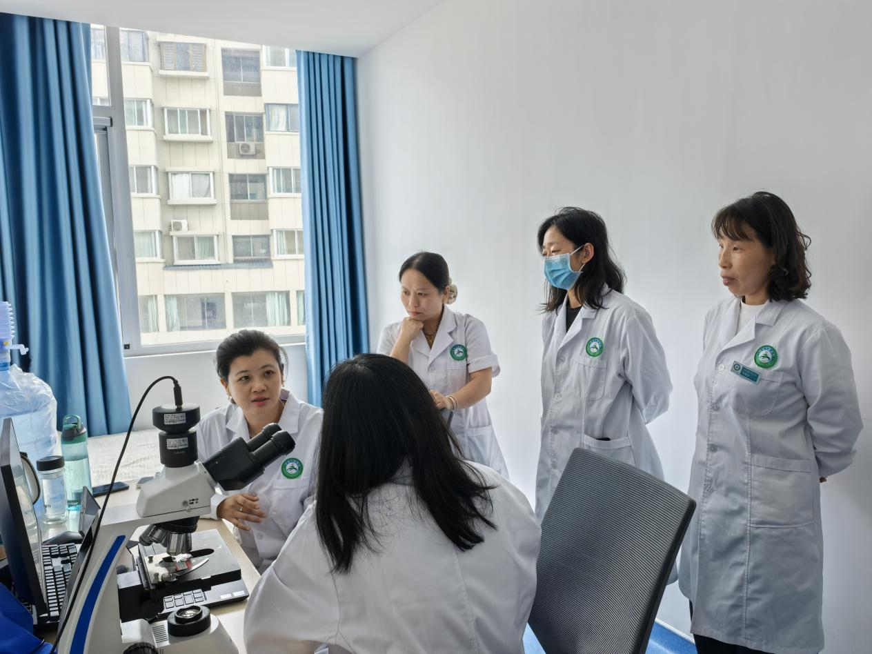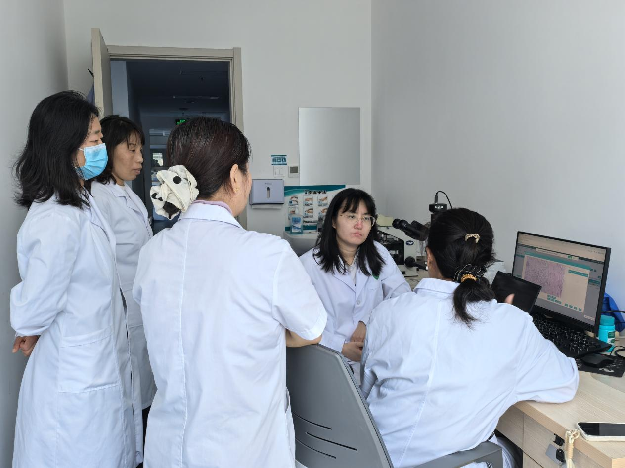 佳县人民医院只有马调如一名病理科医生,她原本是内科医生,通过坚持不懈的学习,逐渐掌握了多种疾病的病理诊断,全县三家医院的病理工作都落在她肩膀上。医疗队员、病理科副主任医师苏运超得知后,深感马老师不容易。当地病理以皮表肿物切除标本为主,还有少量的胃肠镜、宫颈活检标本以及宫颈TCT,每天一上班,苏运超就和马老师一起查看病理切片和既往诊断资料,为她带读了近两年的病理切片,解答日常诊断疑惑。她还邀请副队长李锘来到病理科,共同为马老师讲授天疱疮和常见皮肤肿瘤的病理活检和诊断等知识。