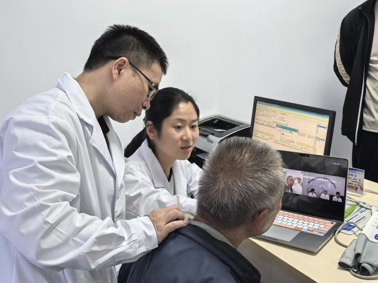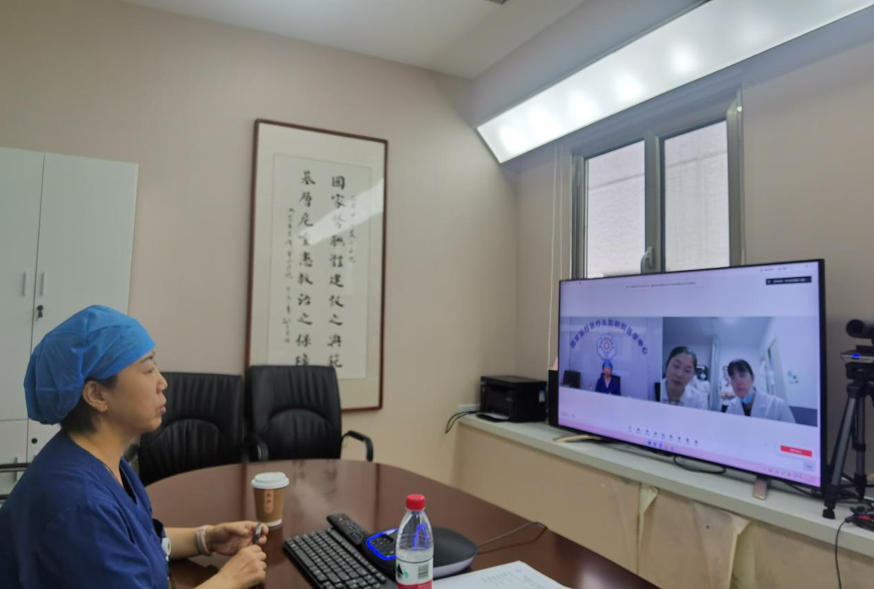 舒晓明主任医师、张玉姣副主任医师发起远程会诊,向任鸿翔副主任医师介绍老人症状