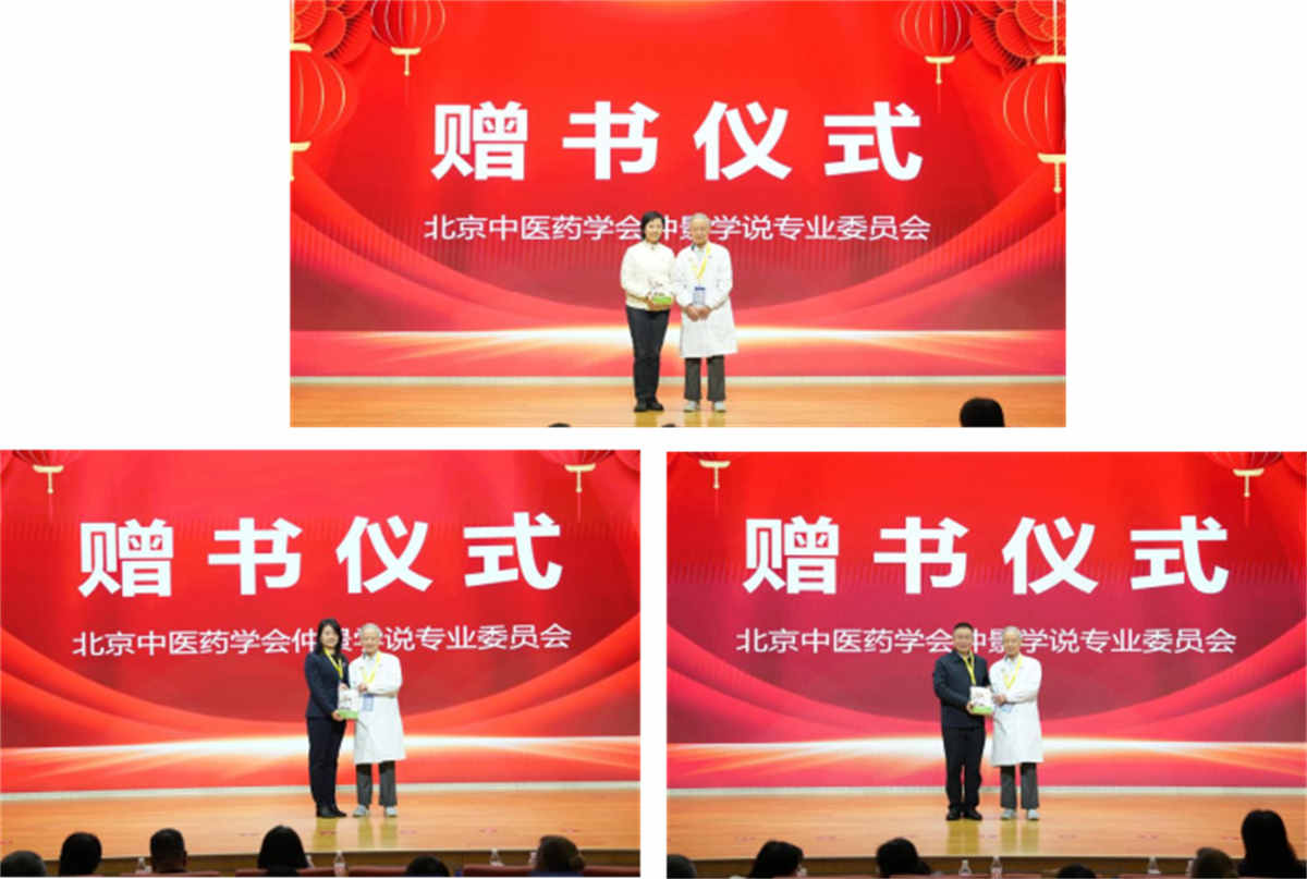 开幕式后,冯世纶教授向国家中西医结合医学中心、北京中医药学会、东直门医院赠送最新经方书籍,助力学术传承。