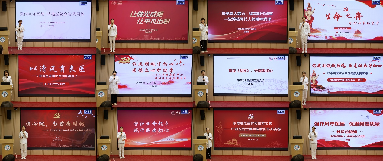 参赛选手围绕“强作风守医德,优服务提质量”主题,深入学习贯彻习近平新时代中国特色社会主义思想,扎实推进中央八项规定精神学习教育走深走实,持续强化医德医风建设,促进党建与业务深度融合。在广泛开展讲党课的基础上,经过党支部推荐、党总支初评、复赛,共有12位党课讲述人参加微党课决赛。