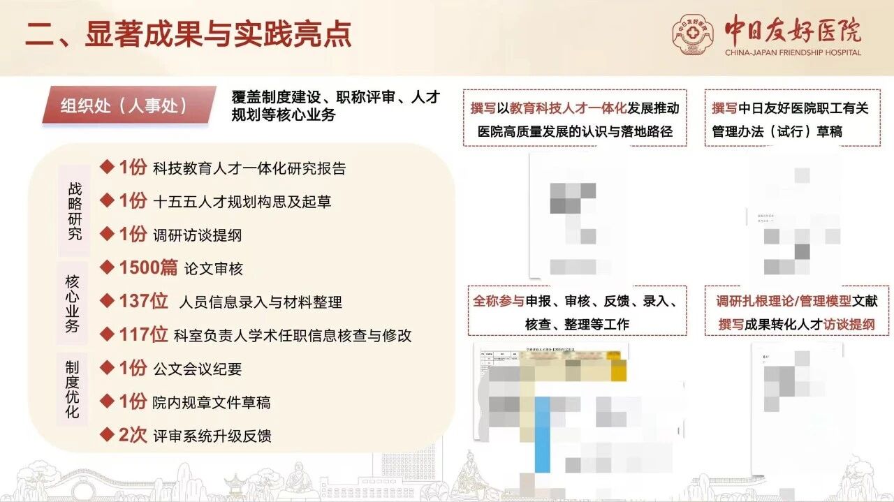 结业汇报现场,同学们展示的实习实绩令人瞩目:深度参与医院日常管理实践,梳理形成的经验总结获上级部门认可;面对面专访国内顶尖专家,制作的健康科普视频向全社会传递健康理念;汇总海量文献资料,结合导师指导与实践经验,编制完成可复用的法规宝典,为医院管理工作提供了有益参考……等等。这些成果既是实习生成长的见证,更是“南园”项目育人模式有效性的生动诠释。