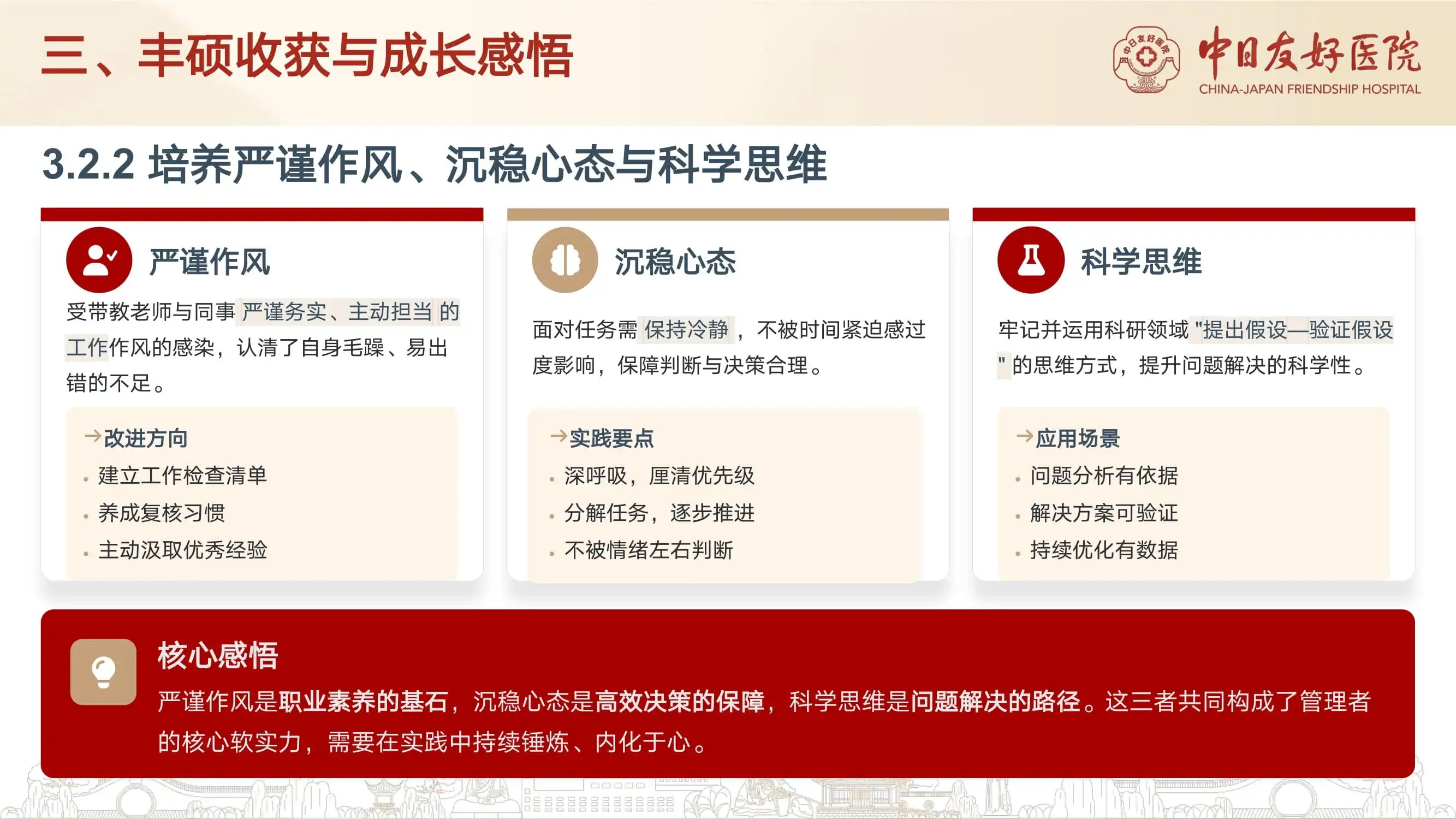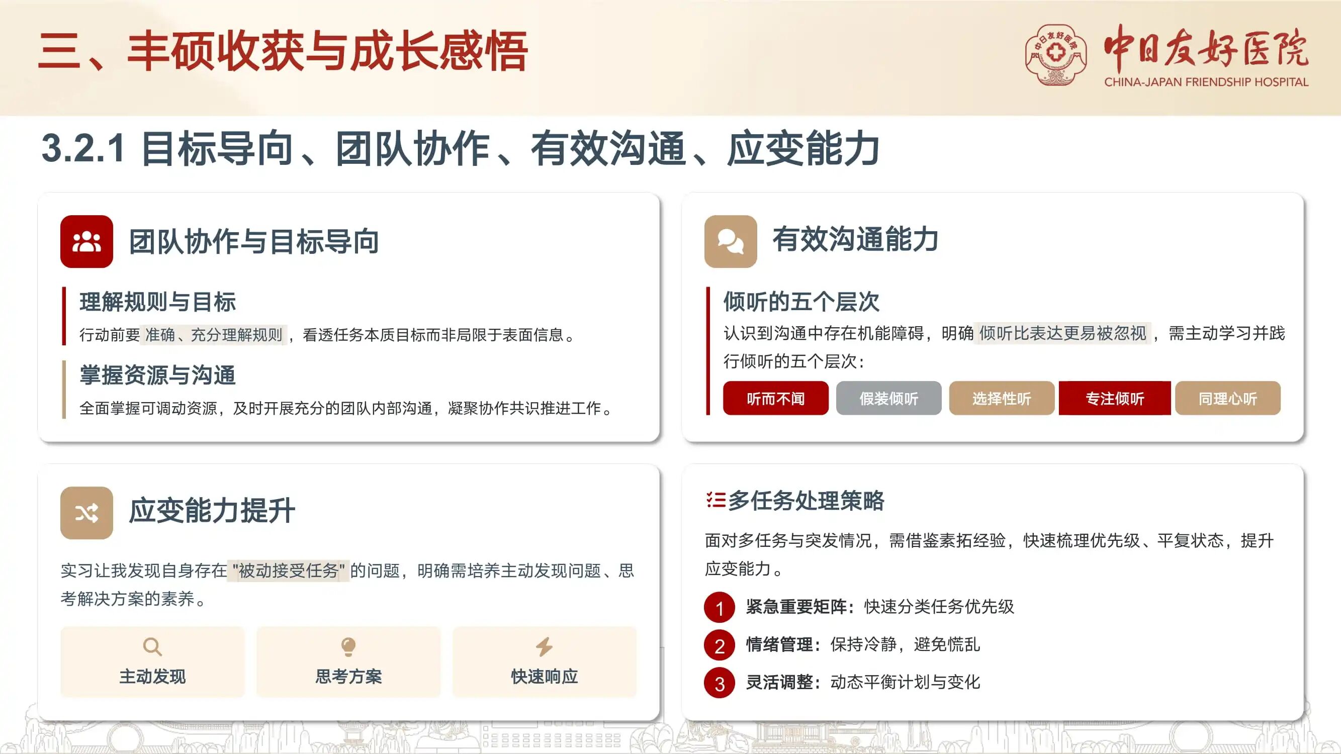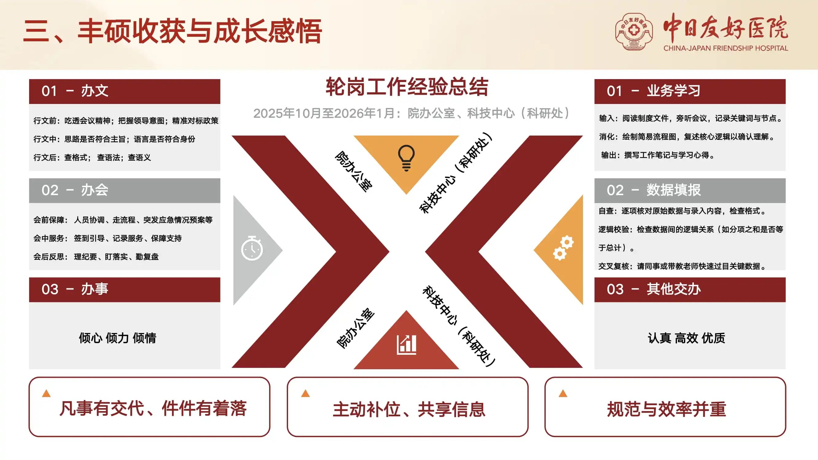 从初入医院的懵懂忐忑到独当一面的从容自信,实习生们在实践中锤炼了硬本领,也沉淀了软实力:“团队协作、有效沟通与应急应变能力得到了切实提升,严谨作风、沉稳心态与科学思维得到了扎实提高,都将成为未来前行的宝贵财富。”