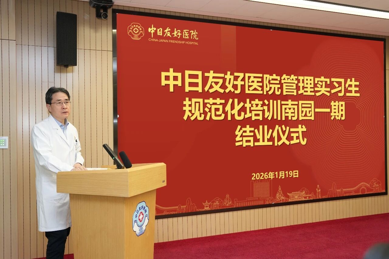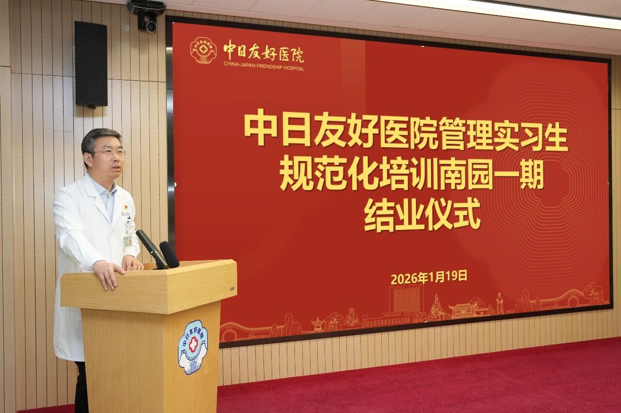 2026年1月19日下午,我院举行管理实习生规范化培训“南园一期”结业仪式。李天庆党委书记、崔勇副院长(主持医院行政工作)、齐剑锋总会计师出席仪式。14位管理实习生围绕管理实习培训的思考与实践、收获与建议展开精彩汇报,用真挚感悟与扎实成果,为为期三个月的实习培训画上圆满句号。