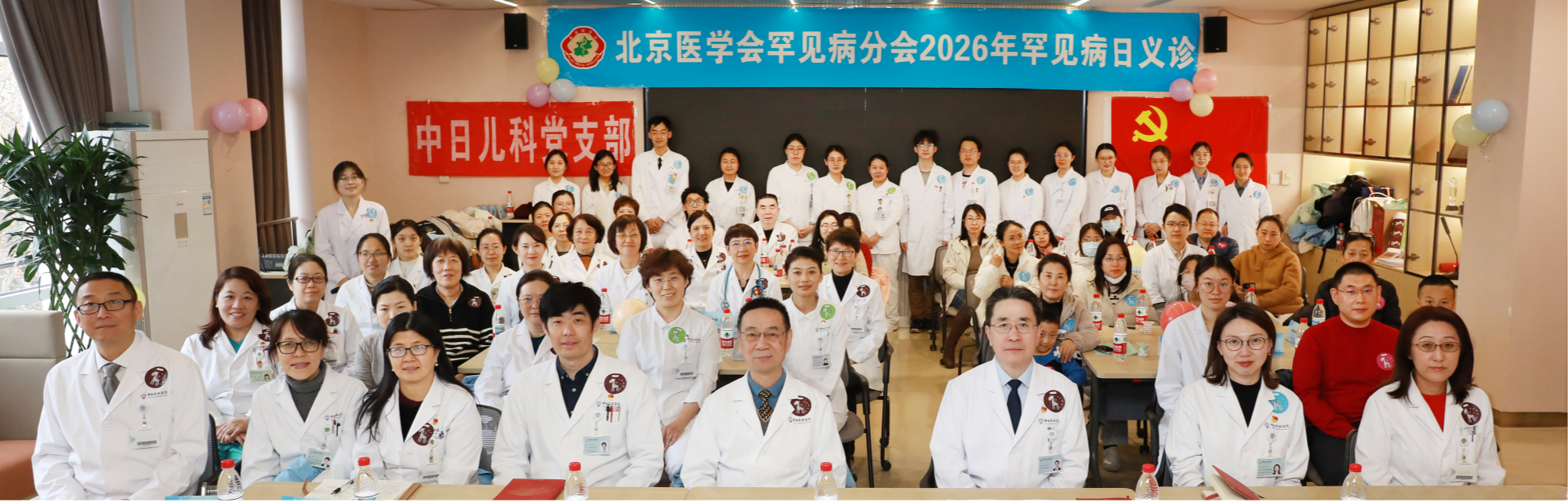 2026年2月28日下午,中日友好医院内科党总支儿科党支部携手教育教学党总支北中医/临研所研究生第二党支部,在医院国际部远程会诊中心开展“强基固本守初心·创新服务护罕见”2026国际罕见病日健康护航行动暨主题党日活动,特邀医院相关职能部门负责人、精神心理专家、罕见病家长代表、儿科医护人员、研究生共100余人齐聚一堂,共话罕见病诊疗与关爱。中日友好医院党委李天庆书记出席并致辞,强调了医院守护罕见病患者健康的初心与担当,呼吁全社会共同关注罕见病群体,以专业力量为罕见病家庭筑牢健康防线;儿科主任邵庆亮介绍了科室在罕见病诊疗领域的特色优势,展现了科室在罕见病精准诊断、规范治疗与长期随访管理方面的专业能力。儿科专家张知新讲解如何从矮小中发现罕见病,教育教学党总支书记王君做活动总结。