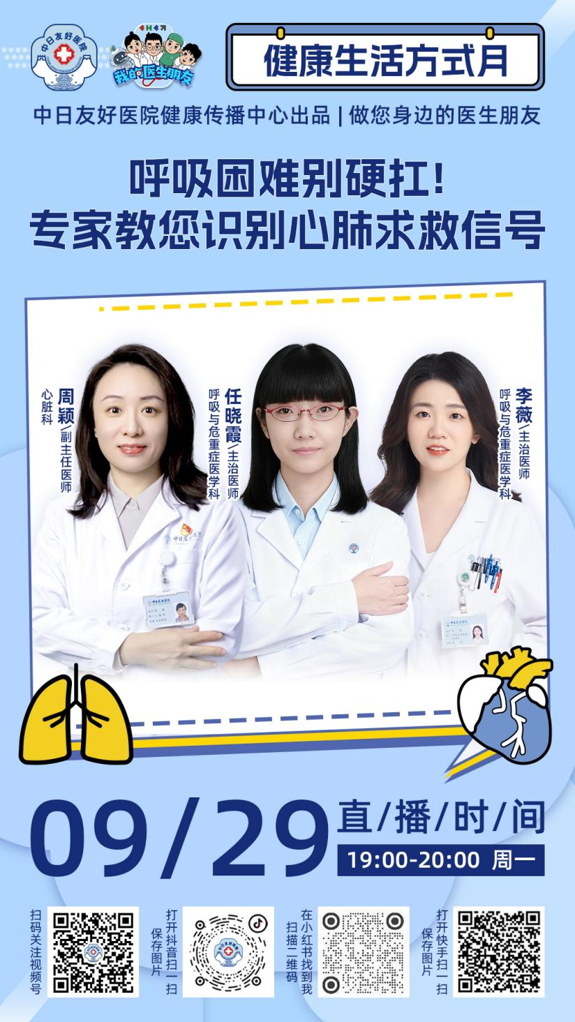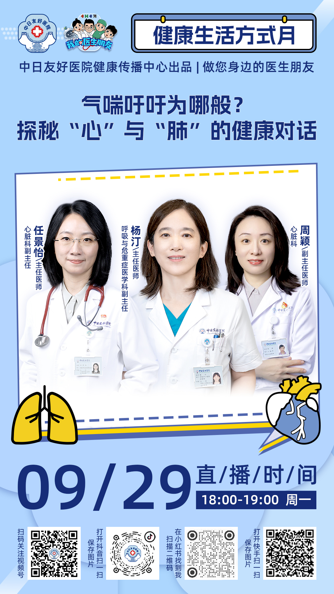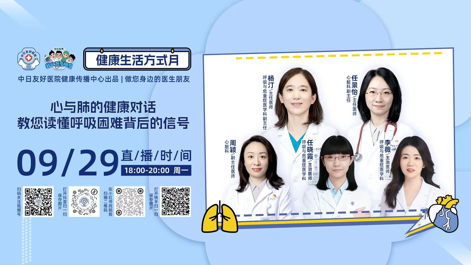 9月29日(周一)18:00-19:00,《气喘吁吁为哪般?探秘“心”与“肺”的健康对话》,专家教您读懂身体信号,学会科学应对。无论您是长期受困还是近期不适,这场“心肺对话”都不容错过!