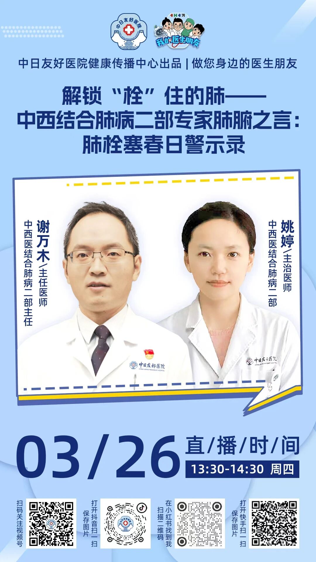 直播预告|解锁“栓”住的肺|国家呼吸医学中心-国家中西医结合医学中心,中西医结合肺病二部专家肺腑之言:肺栓塞春日警示录
