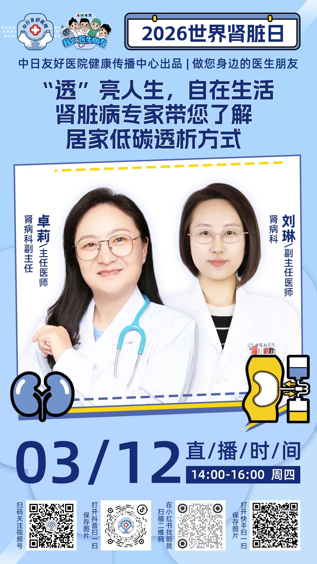 直播预告丨2026世界肾脏日丨“透”亮人生,自在生活——肾脏病专家带您了解居家低碳透析方式