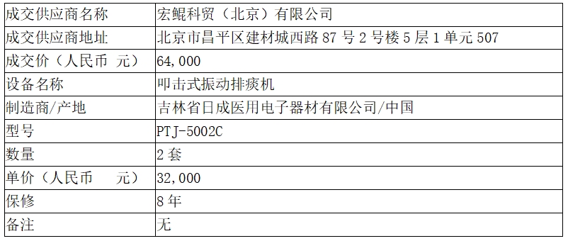 中日友好医院2025年叩击式振动排痰机采购项目成交结果公告
