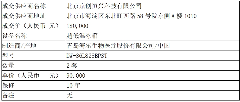 中日友好医院2025年超低温冰箱采购项目成交结果公告