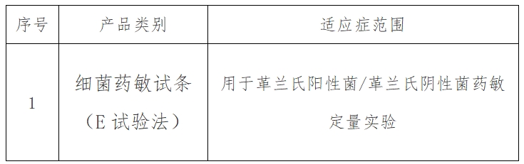2.4、调研列表范围:填报产品应为已获得国内有效注册证的“细菌药敏试条(E试验法)”类医用耗材,详见下表: