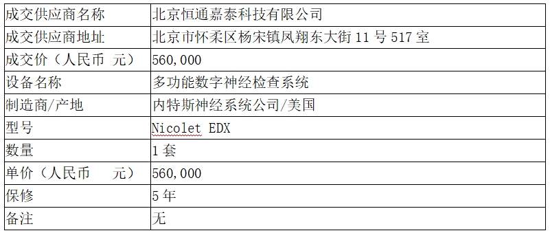 中日友好医院2025年多功能数字神经检查系统采购项目成交结果公告