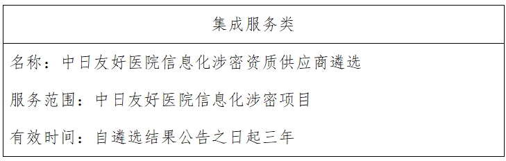 二、项目名称:中日友好医院信息化涉密资质供应商遴选
