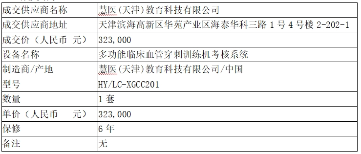 中日友好医院2025年多功能临床血管穿刺训练机考核系统采购项目成交结果公告
