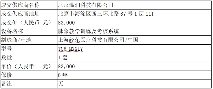 中日友好医院2025年脉象教学训练及考核系统采购项目成交结果公告