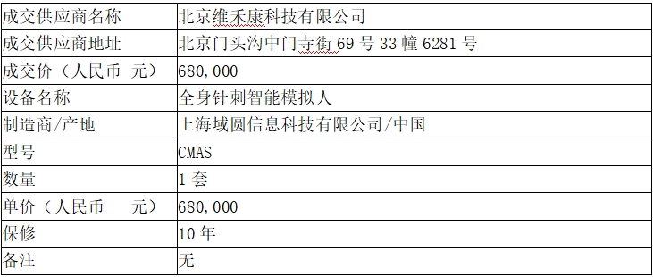 中日友好医院2025年全身针刺智能模拟人采购项目成交结果公告