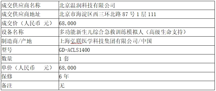 中日友好医院2025年多功能新生儿综合急救训练模拟人(高级生命支持)采购项目成交结果公告