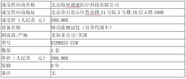 中日友好医院2025年肺功能测试仪(营养代谢车)采购项目成交结果公告