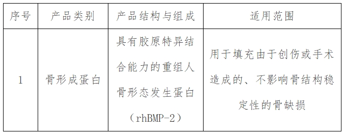 2.4、调研列表范围:填报产品应为已获得国内有效注册证的“骨形成蛋白”类医用耗材,详见下表: