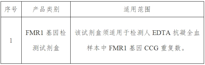 2.4、调研列表范围:填报产品应为已获得国内有效注册证的“FMR1基因检测试剂盒”类医用耗材,详见下表: