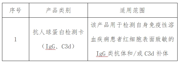 2.4、调研列表范围:填报产品应为已获得国内有效注册证的“抗人球蛋白检测卡(IgG、C3d)”类医用耗材,详见下表: