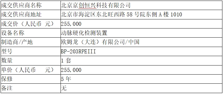 中日友好医院2025年动脉硬化检测装置采购项目成交结果公告