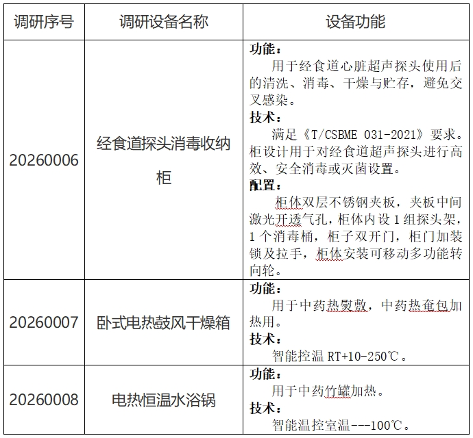 中日友好医院对经食道探头消毒收纳柜等设备耗材联动采购市场调研公告