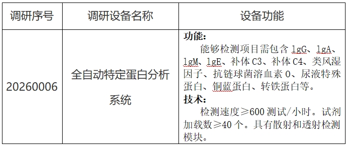 中日友好医院对全自动特定蛋白分析系统设备耗材联动采购市场调研公告