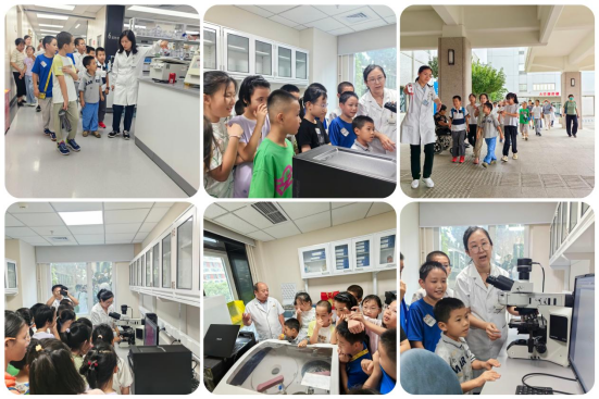 随后,小朋友们在科技中心党支部工作人员的带领下,踏入科技中心实验室。走进实验室,仿佛置身于一个科技的宝库,形形色色的仪器设备让人眼花缭乱。从简单的玻璃器皿到复杂的电子仪器,从基础设备到先进的成像分析系统,每一件仪器都承载着科学研究的重任。活泼可爱的实验小鼠、神奇的显微镜,都让孩子们惊叹不已。每一件物品、每一个角落,都像是打开新世界的钥匙,激发着孩子们强烈的好奇心。接着,在门诊药房,自动摆药机高效有序地工作,中药配方颗粒整齐排列,展示着现代药学的高效与精准,让孩子们直观感受到科技为医疗带来的巨大变革。