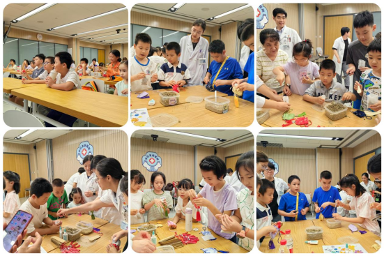 药学部党支部毛敏老师带来的中药香囊知识课堂,更是将活动推向高潮。毛老师娓娓道来,讲述中药香囊从战国时期萌芽,用于预防疾病、驱邪避疫,到明清时期成为端午节必备物品的悠久历史。还介绍了不同功能用途的香囊,如驱蚊香囊含有薄荷、艾叶等,能在夏日驱赶蚊虫;健脾消食香囊以广藿香、苍术、陈皮等为原料,帮助人体健脾祛湿。小朋友们睁大眼睛,听得津津有味,被中医药文化的博大精深深深吸引。