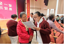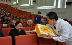 副院长(主持行政工作)崔勇首先致辞,代表院党委院领导,感谢老同志们为医院做出的贡献,用青春和汗水为医院的建设和发展打下了坚实基础,祝福老同志重阳节快乐、健康长寿!还为今年恰逢75、80、85岁老同志祝寿,并与党委书记李天庆一起向阎小萍、柯元南、吴东海、李光伟、杨玉山等31位“寿星”代表赠送生日礼物。