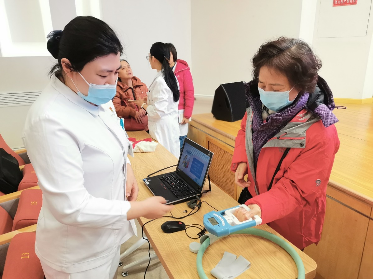 保健三部护士白璐指导老同志做握力测试