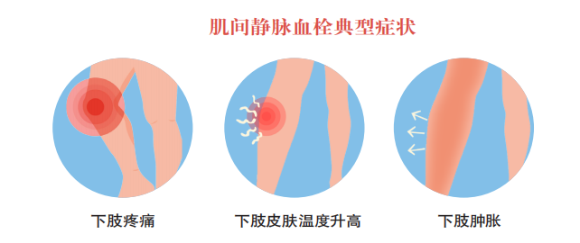 肌间静脉血栓的典型表现是双下肢不对称水肿,即双下肢粗细不同,小腿或者足踝区域肿胀、疼痛,部分患者还会出现皮温升高。
