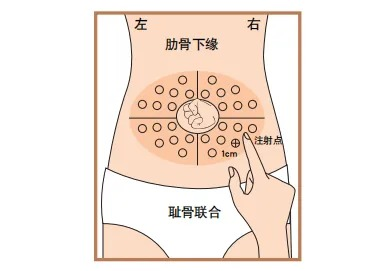 也就是4个可以注射部位之间的轮换(见下图),比如从腹部→上臂→大腿→臀部轮换。