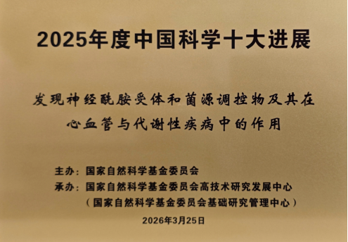 3月25日,国家自然科学基金委员会发布2025年度“中国科学十大进展”。由我院心脏科郑金刚教授团队与北京大学、山东大学、温州医科大学等顶尖科研团队合作的重大研究成果“发现神经酰胺受体和菌源调控物及其在心血管与代谢性疾病中的作用”成功入选。该研究首次发现并阐明了一种名为“神经酰胺”的脂质分子如何加速动脉粥样硬化,为心血管疾病的精准诊断与治疗,特别是为合并慢性肾脏病的高危人群,带来了突破性的科学见解和干预希望。