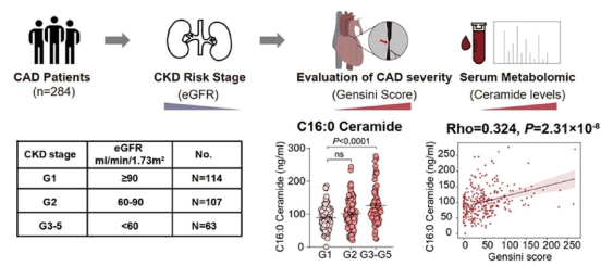临床研究首次系统性揭示:随着肾功能下降,患者血液中多种“长链神经酰胺”(如C16:0、C18:0)的水平会显著升高。最关键的是,即便完全排除了传统胆固醇、血压、血糖等所有已知危险因素的影响,神经酰胺水平仍与患者冠状动脉病变的严重程度独立相关。这有力地证实,神经酰胺是慢性肾脏病患者心血管风险的、独立于传统因素的新型生物标志物。这一发现,为精准识别最高危人群提供了明确的“标尺”,也意味着干预“残余风险”找到了新的突破口。