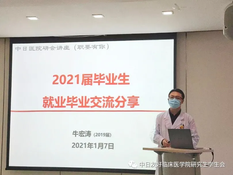 2021年1月7日,由中日友好医院教育处主办、中日友好医院研究生学生会承办的“职要有你”第一期就业指导交流会于医院A栋第三会议室顺利召开。本次会议邀请了中日友好医院中西结合肿瘤科贾立群主任和呼吸与危重症医学科牛宏涛医师作为主讲嘉宾,教育处李颖处长亦作为嘉宾出席本次会议,来自北京大学医学部、北京协和医学院、北京中医药大学、首都医科大学等学校的各年级学生参与并认真聆听了此次讲座。在贾主任和牛师兄的精彩讲说下,现场掌声雷动,同学们受益匪浅。