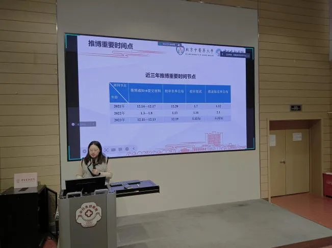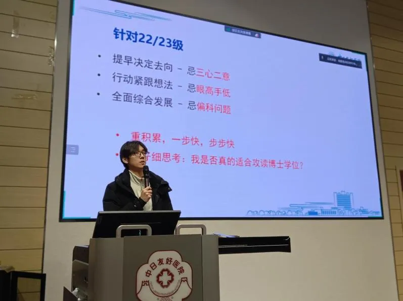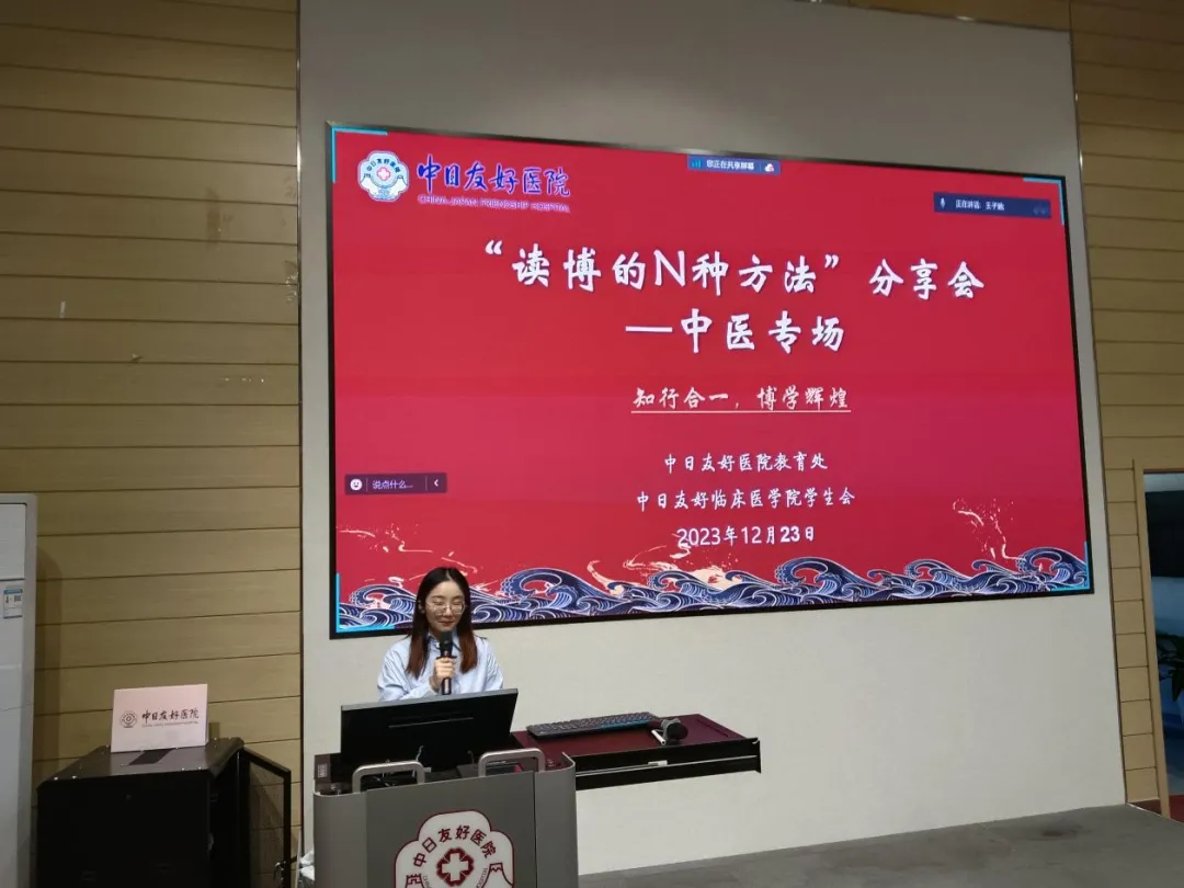 随着硕士毕业季的来临,许多同学正面临着人生中的重大选择——是否继续深造读博。为了助力同学们在未来的学术之路上走得更远、更稳。12月23日,中日友好临床医学院学生会与北中医第三党支部携手,成功举办了“读博的N种方法”分享会。本次活动邀请了北京中医药大学五位博士师兄师姐进行经验分享,有近百人中日友好临床医学院全体在院研究生通过线上和线下的方式参与并认真聆听了此次分享会。通过各位嘉宾的精彩讲说,同学们受益匪浅。